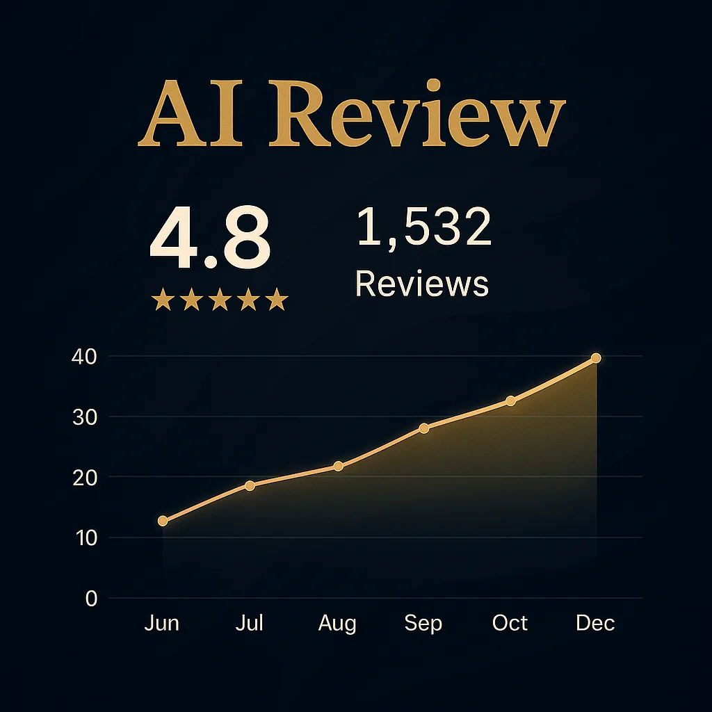 Review velocity, response consistency, and credibility signals designed for AI-driven discovery.