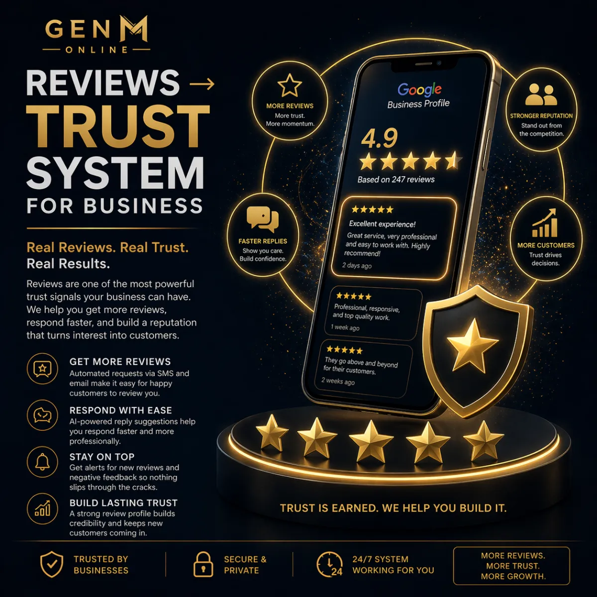 GenM is built for business owners who are serious about their reputation, tired of missing calls, and done being invisible in search. No agency needed. No bloated software. Just the tools that matter, working together β so you can focus on running your business.